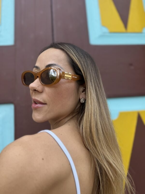 Feito em acetato italiano premium, ele traz aquele visual vintage dos anos 80 e 90 que voltou com tudo. Com design diagonal levemente arredondado que combina com qualquer formato de rosto. As lentes escuras com proteção UV 400+ garantem segurança total para seus olhos, porque estilo só vale a pena quando vem acompanhado de qualidade. E para fechar com charme, um detalhe dourado lateral que faz toda a diferença.